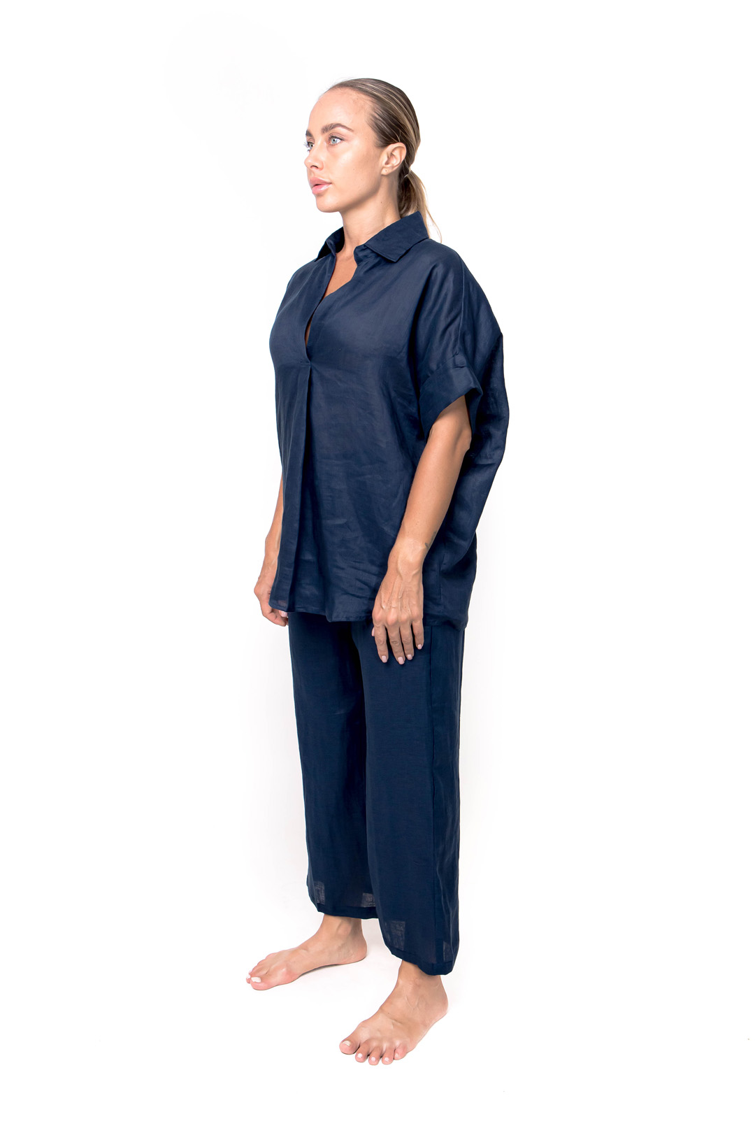 Designed with versatility in mind, our Linen Shirt features a classic silhouette with modern detailing. The relaxed fit and breathable fabric ensure all-day comfort, while the crisp collar and button-down front add a touch of refinement. Whether paired with tailored trousers for a polished office look or with denim shorts for a casual weekend vibe, this shirt effortlessly transitions from day to night with understated charm.